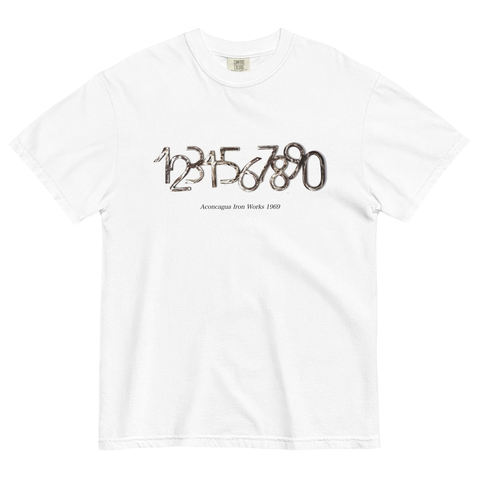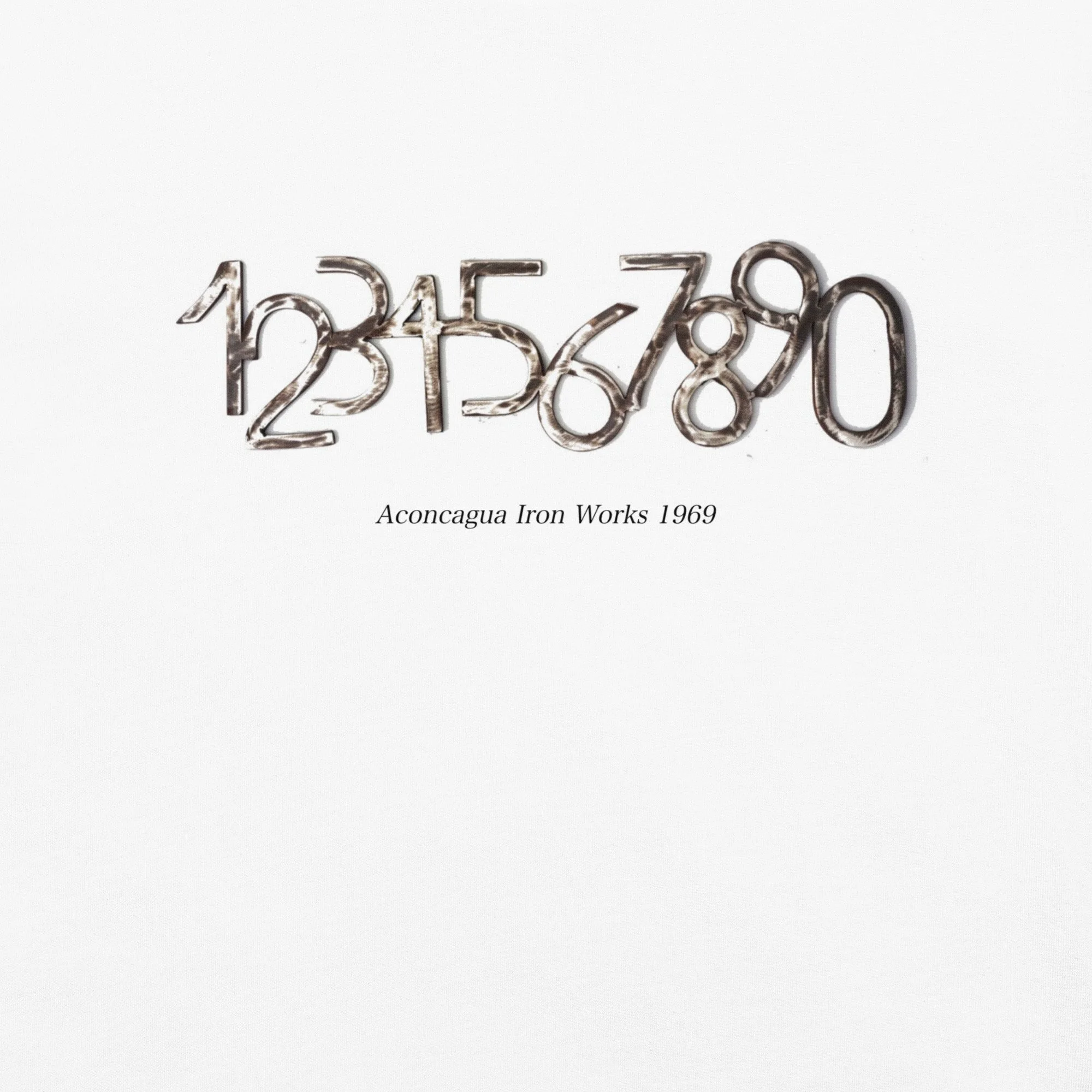 This heavyweight 100% cotton tee features a raw, industrial style number design inspired by authentic ironwork from my grandfather’s shop, Aconcagua Iron Works (est. 1969).